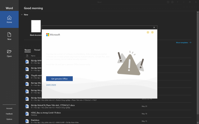 Dạo gần đây có nhiều bạn thắc mắc hỏi về lỗi Get Genuine Office khi cài Office 2016 hoặc 2019 dùng key KMS. Mặc dù thông báo lỗi này không ảnh hưởng gì đến các tính năng của office nhưng lại gây cảm giác khó chịu cho người dùng. Vậy làm thế nào để tắt thông báo Get Genuine Office khó chịu này?