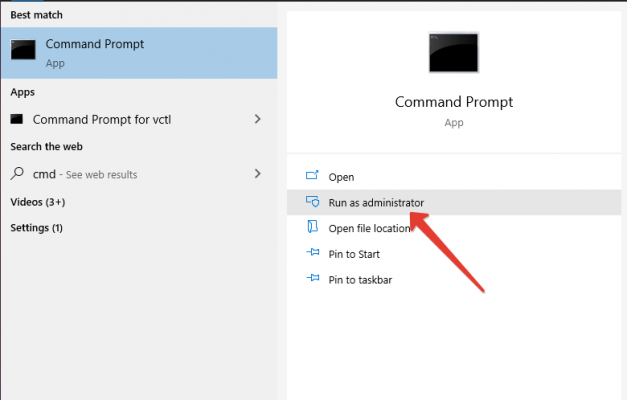 - Mở Command Prompt as Administrator