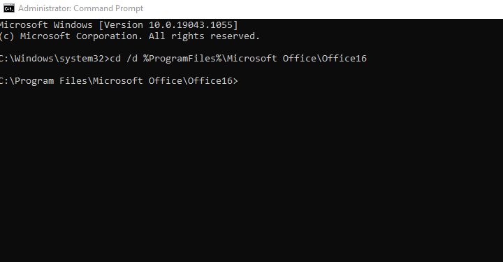 Đối với office 32 bit:cd /d %ProgramFiles(x86)%\Microsoft Office\Office16