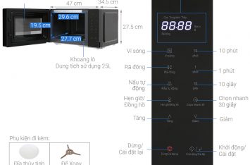 - Kích thước khoang lò:Ngang 29.6 cm – Cao 19.5 cm – Sâu 27.7 cm