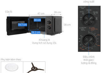 - Tiện ích:Chuông báo khi nấu xong, Hẹn giờ lên tới 35 phút, Khoang lò có đèn