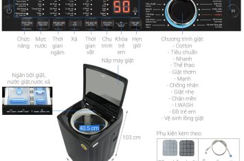 - Kích thước, khối lượng:Cao 103 cm – Ngang 57 cm – Sâu 58 cm – Nặng 40.5 kg