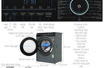 - Bảng điều khiển:Song ngữ Anh – Việt có núm xoay, nút nhấn, cảm ứng, màn hình hiển thị