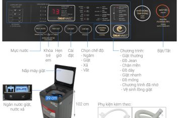 - Chương trình: Đồ mỏng, Đồ Jeans. Đồ dày, Vệ sinh lồng giặt, Giặt thường, Giặt nhanh, Chăn mền, Chương trình đã nhớ