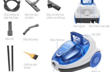 - Tiện ích: Thông báo hộc chứa bụi đầy, Có chức năng thổi bụi, Dây điện tự thu gọn