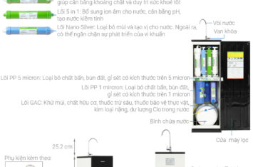 - Lõi chức năng:Lõi 6: ORP (Sx Việt Nam), Lõi 5: Ceramic (Sx Việt Nam), Lõi 7: Alkaline (Sx Việt Nam), Lõi 8: Mineral (Sx Việt Nam), Lõi 9: 5 in 1 (Sx Việt Nam), Lõi 10: Nano Silver (Sx Việt Nam)