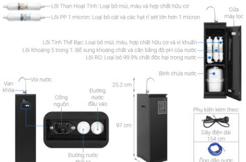 - Lõi lọc thô:Lõi 1: PP 5 micron (Sx Việt Nam)Lõi 2: Than hoạt tính (Sx Việt Nam)Lõi 3: PP 1 micron (Sx Việt Nam)