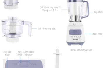 - Tiện ích:Xay đá, Dao xay và nắp có thể tháo rời, Có lưới lọc bã, Có chế độ vệ sinh cối xay nhanh, Có nắp nhỏ cho nguyên liệu trong khi xay, Chân đế chống trượt, Công nghệ xay ProBlend Crush