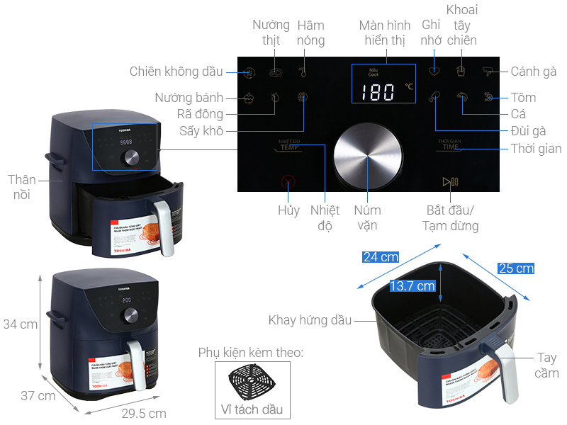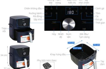 - Chức năng nấu: Chiên, nướng, rã đông thực phẩm, sấy khô hoa quả