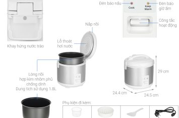 - Kích thước, khối lượng:Ngang 24.5 cm – Cao 29 cm – Sâu 24.4 cm – Nặng 3 kg