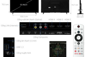 - Cổng nhận hình ảnh, âm thanh:4 cổng HDMI có 1 cổng HDMI eARC (ARC), 1 cổng Composite