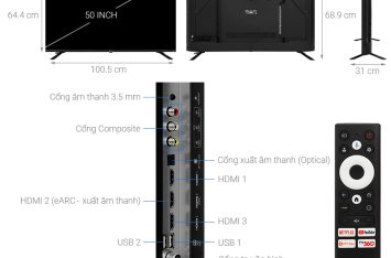 - Cổng nhận hình ảnh, âm thanh:3 cổng HDMI có 1 cổng HDMI eARC (ARC), 1 cổng Composite